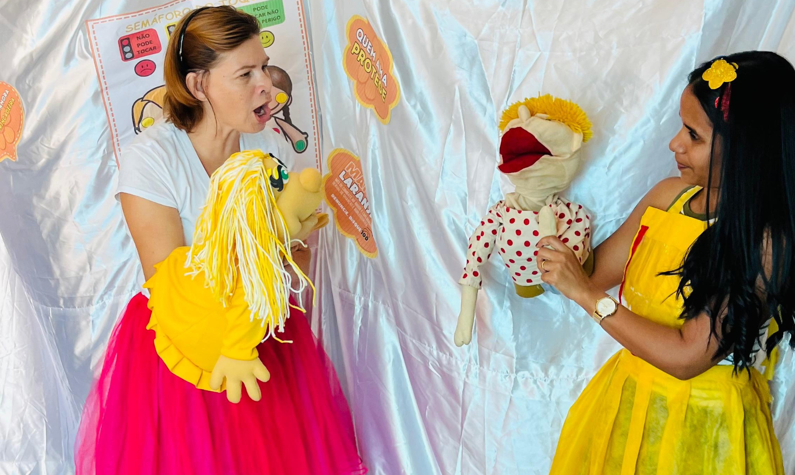 Com o intuito de trabalhar a temática Maio Laranja, que visa conscientizar sobre o abuso e exploração sexual de crianças e adolescentes, no dia 18 de maio, a Creche Municipal TetraCampeã apresentou uma peça teatral para as crianças e funcionários da unidade.
